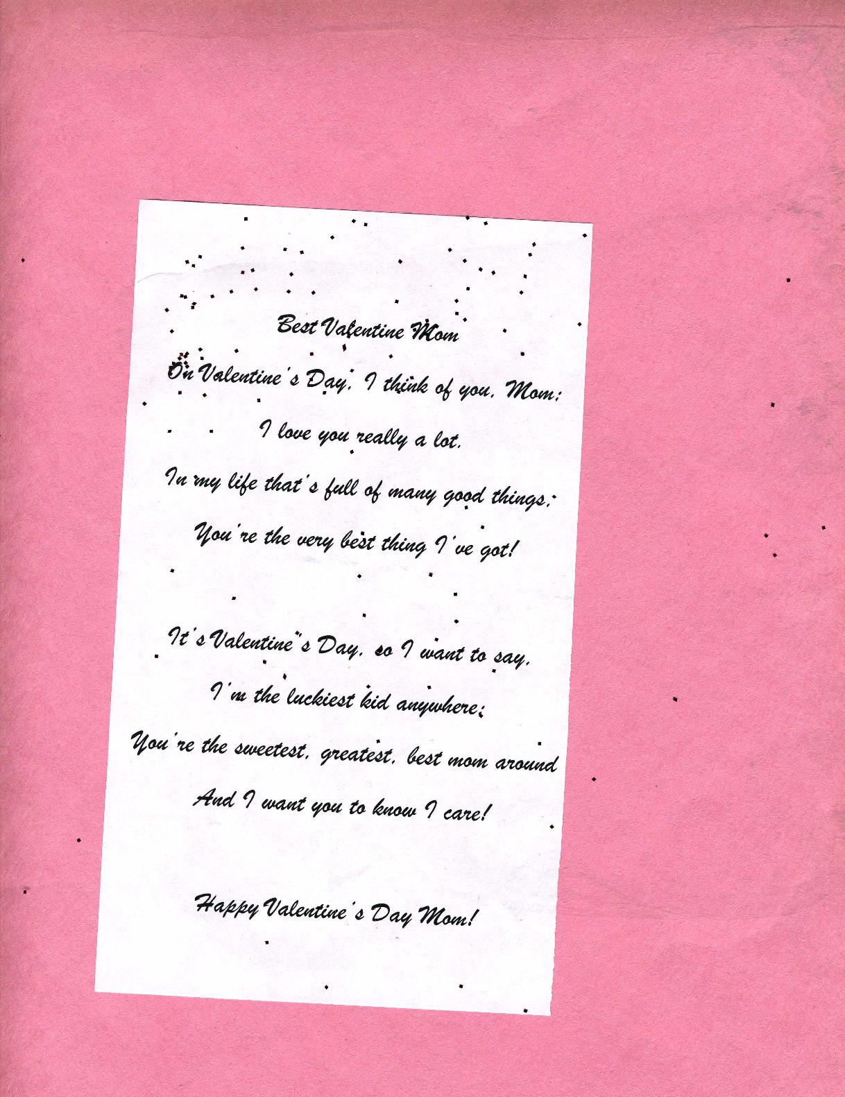 At first I told him no, thinking that he was trying to negotiate some after-hours candy. It was approximately 9:30PM when I arrived home (ON VALENTINE’s DAY), but I had spent all day at work working on a grant that had to be postmarked by today. He insisted and I caved and I grabbed the bag down from the shelf. “HAPPY VALENTINE’S DAY MOM,” he yelled with an extremely proud smile as he dug in the bag and pulled out this card. I swear, at only three years old this kid has a heart that would charm a snake.