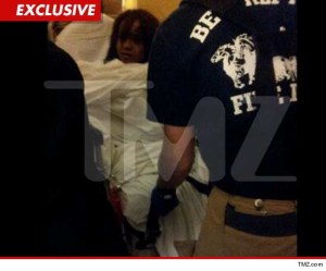 That’s Bobbi Kristina, Whitney’s 18 year old daughter, being rushed to the hospital in the day or so after her mother’s death.